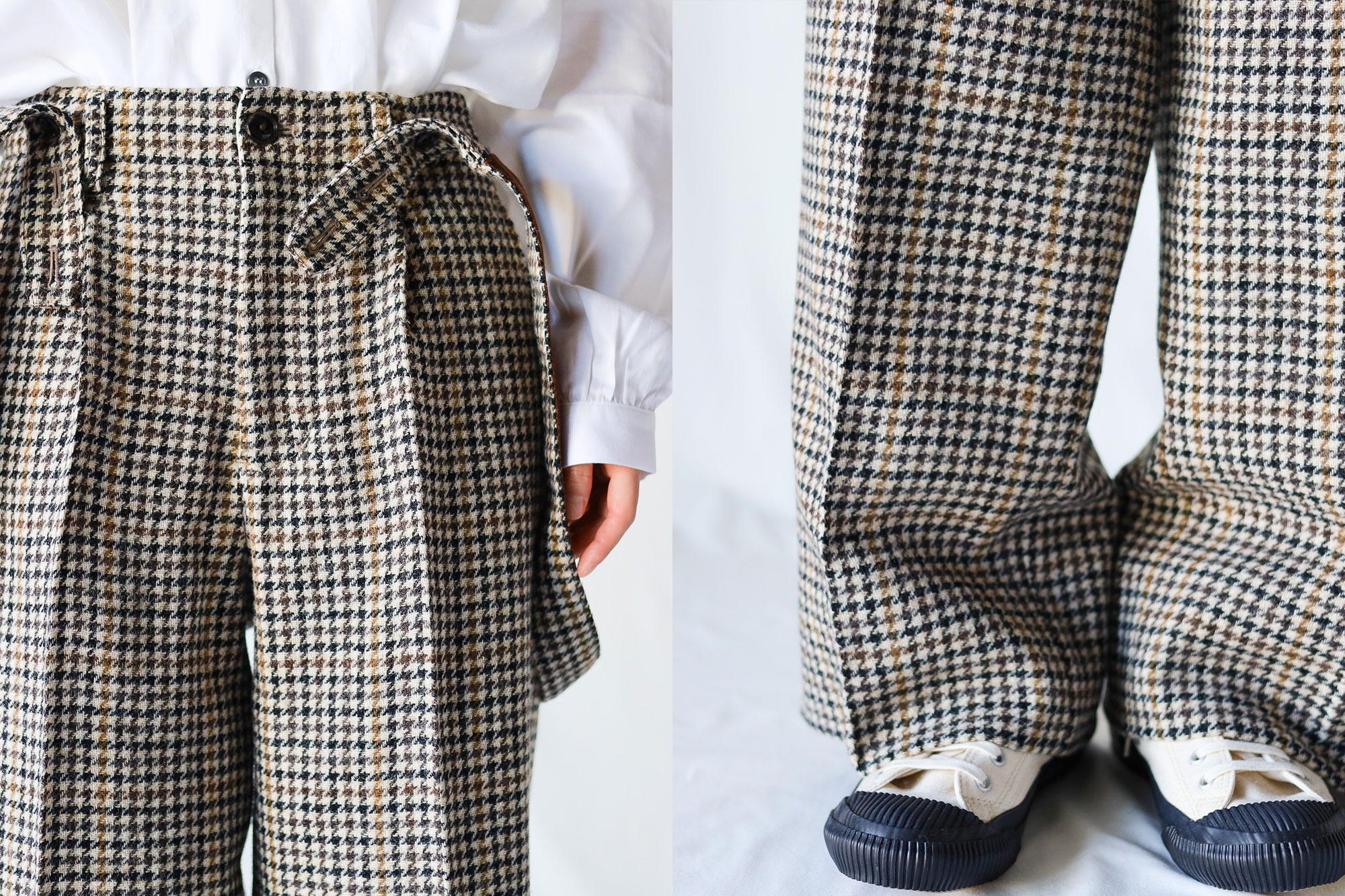 英国MOON社製の厳選された上質な英国羊毛を、シャトル織機でゆっくり織り上げたヨークシャーツイードを使用したワイドパンツです。