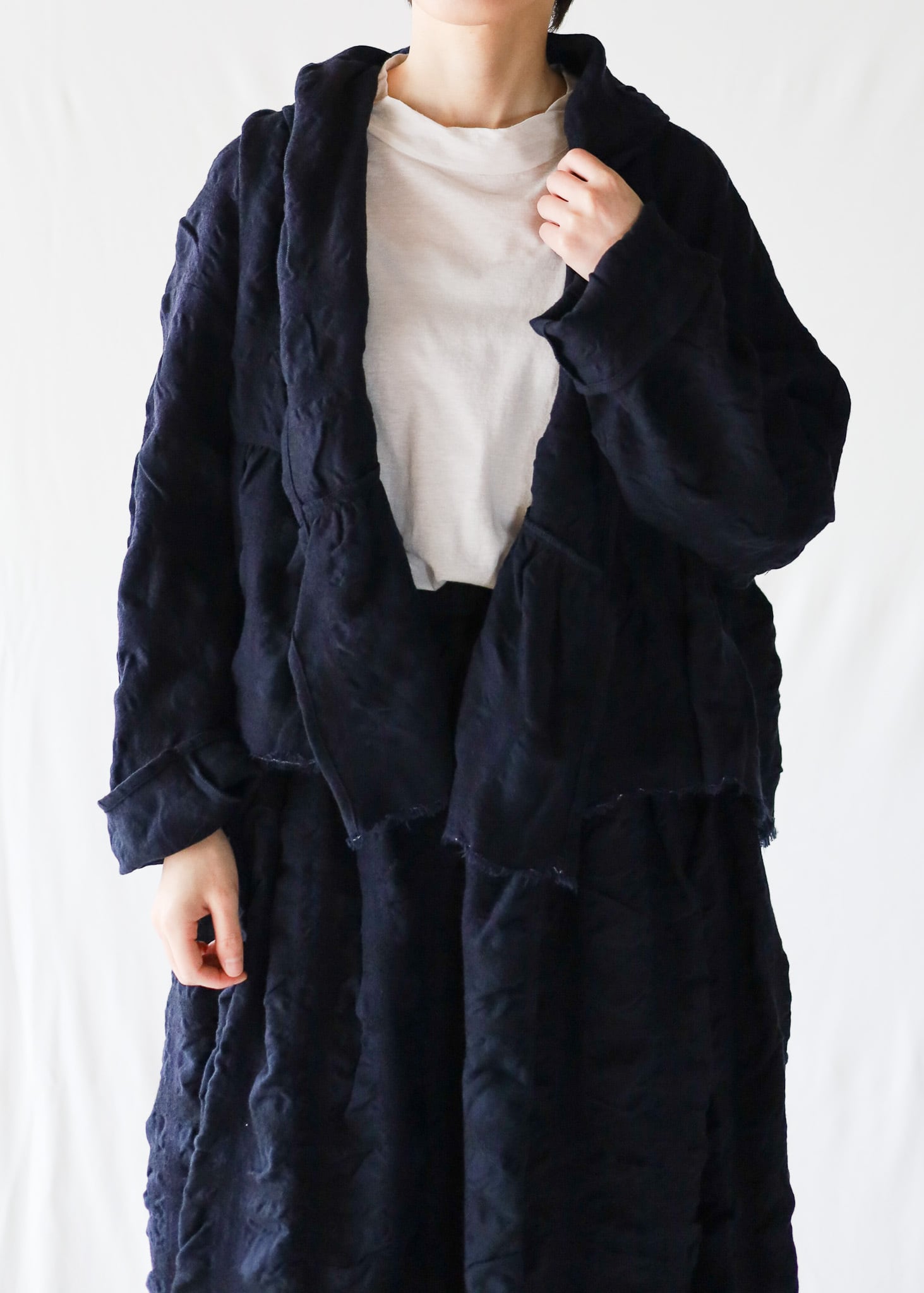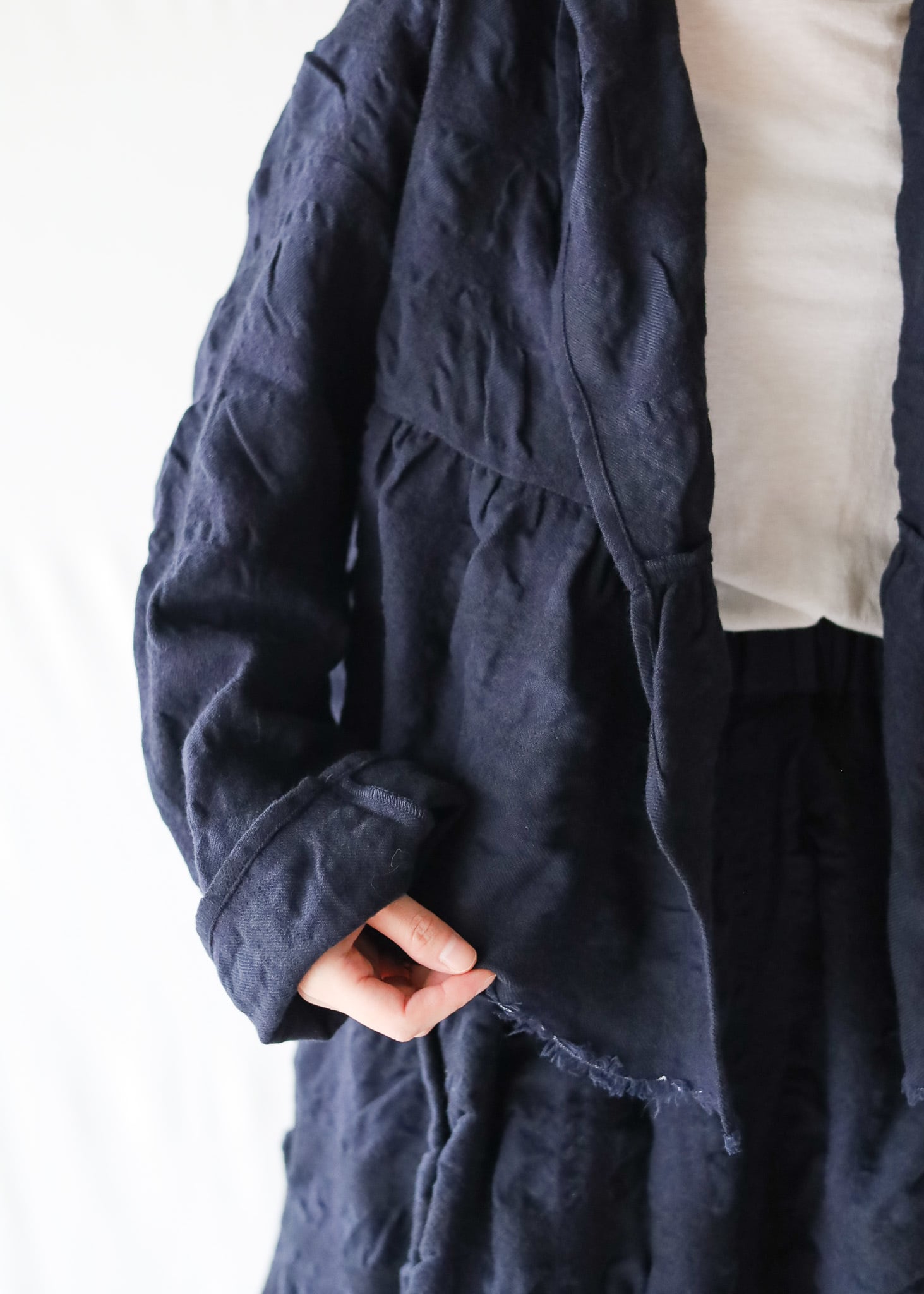 Honnete - コットンウール シャドウチェック ギャザーカーディガン C/W Washed Shadow Check Gather Cardy - Navy