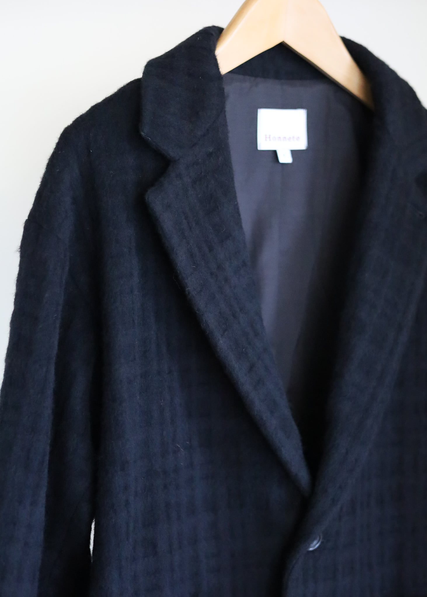 Honnete - シャドウチェック ショートコートジャケット Shadow Check Short Coat Jacket- Black Check