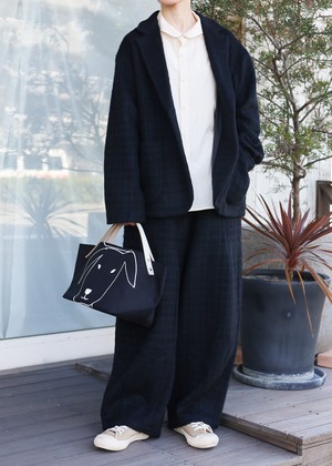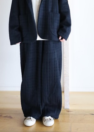 カジュアルさもありながら、上品でクラシカル感があるアイテムです。同生地のジャケットとのセットアップもおすすめです。