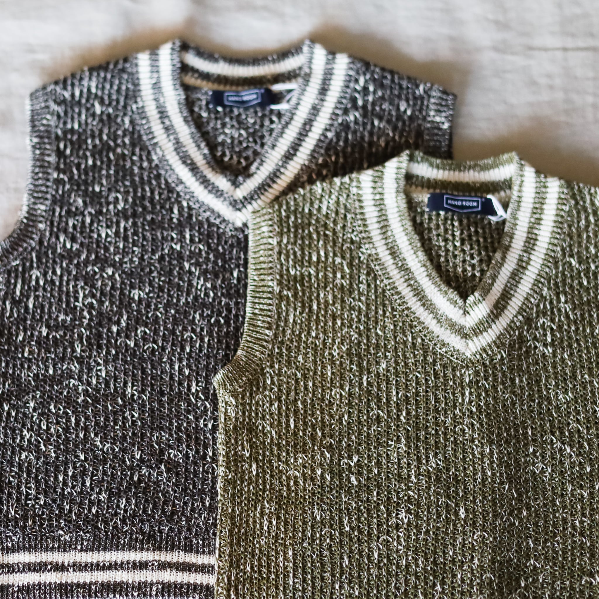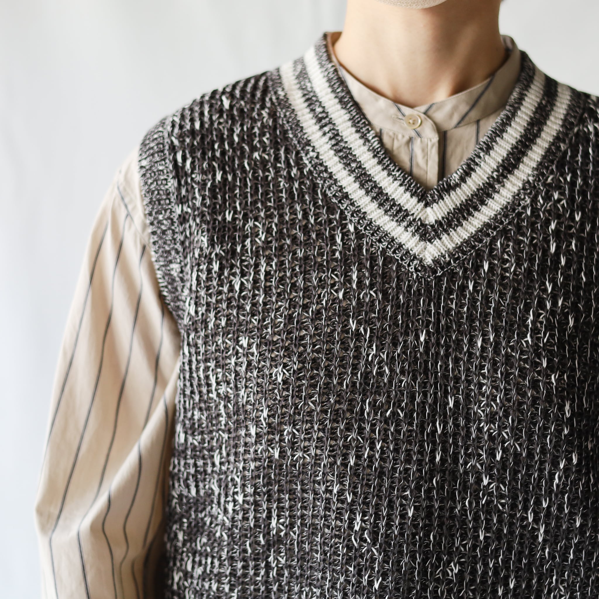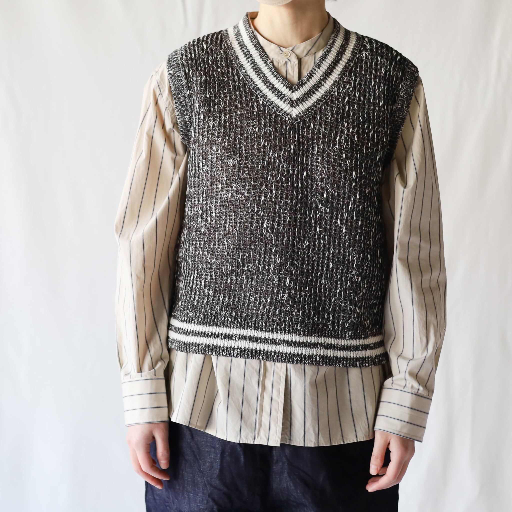 HAND ROOM WOMEN'S - クインテッドニット Vネックベスト - Charcoal / Olive