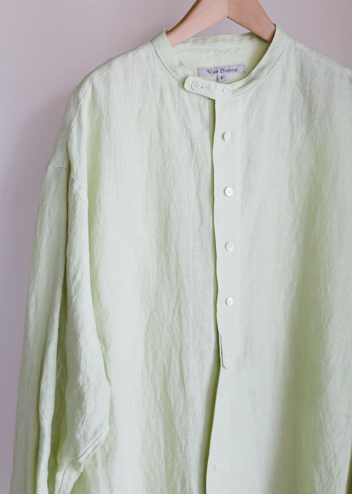 Vlas Blomme - Washed 60/1 Linen チュニックシャツ - Lime Yellow