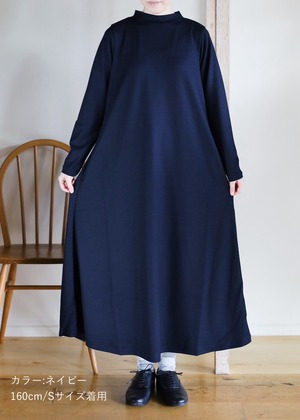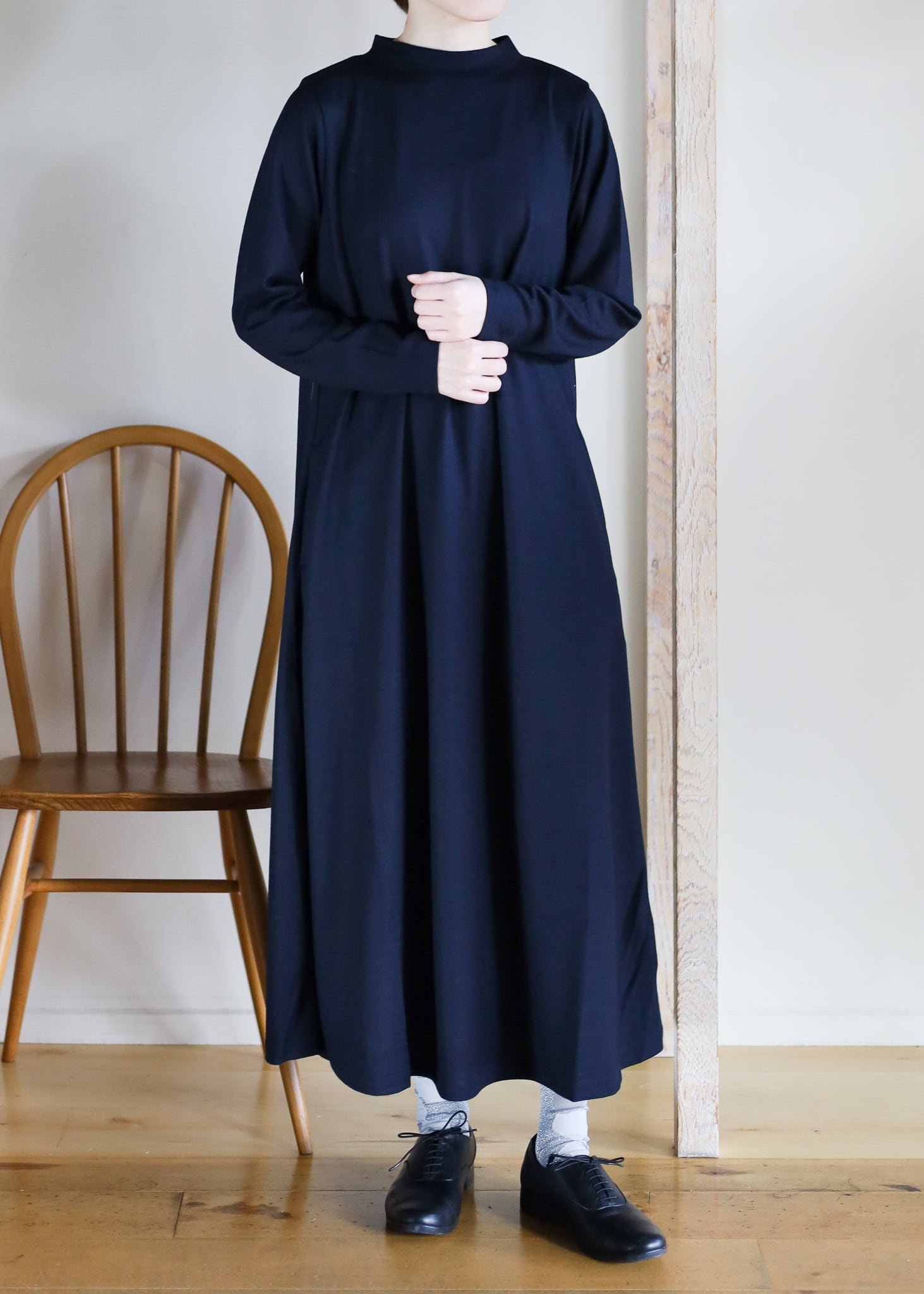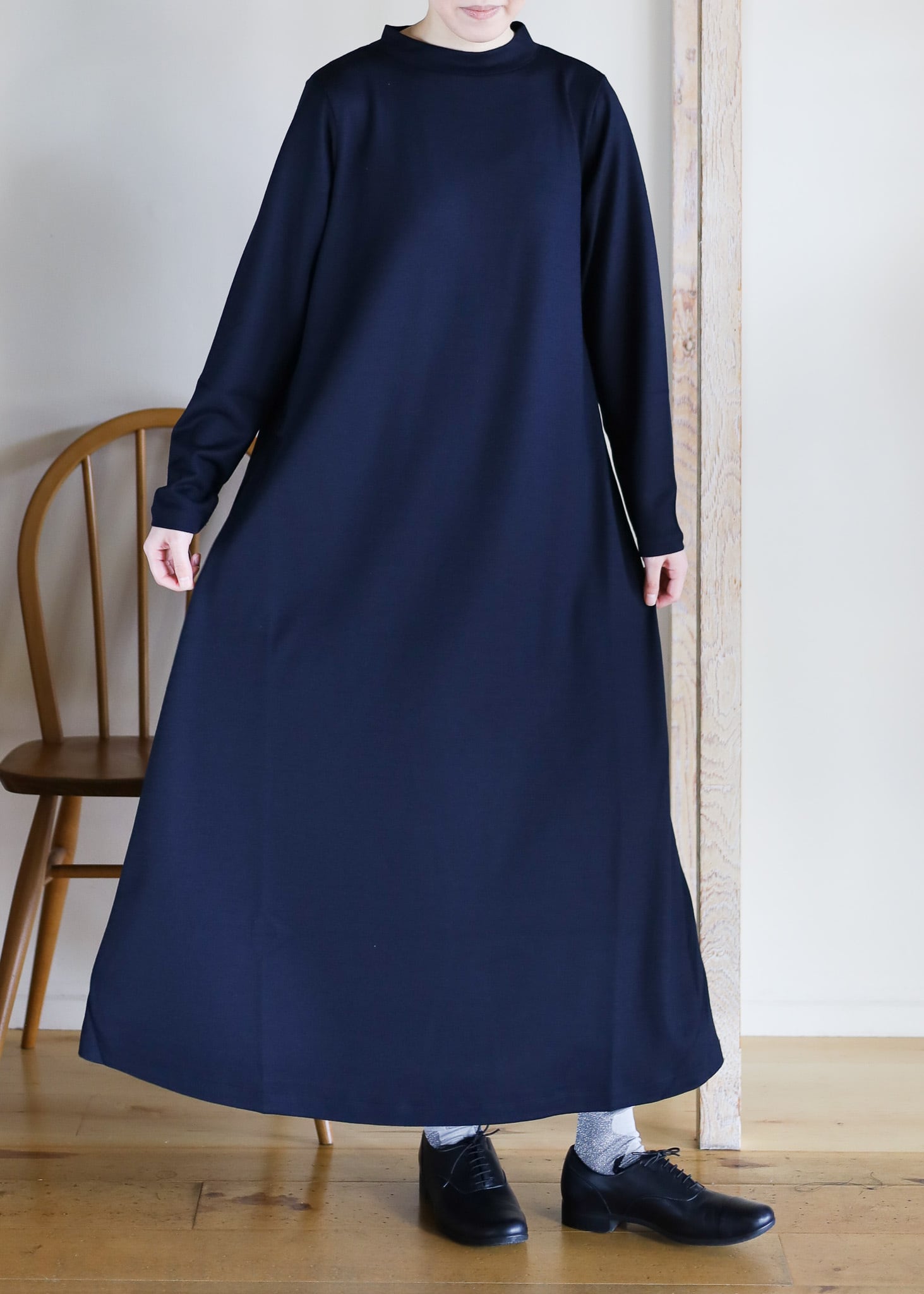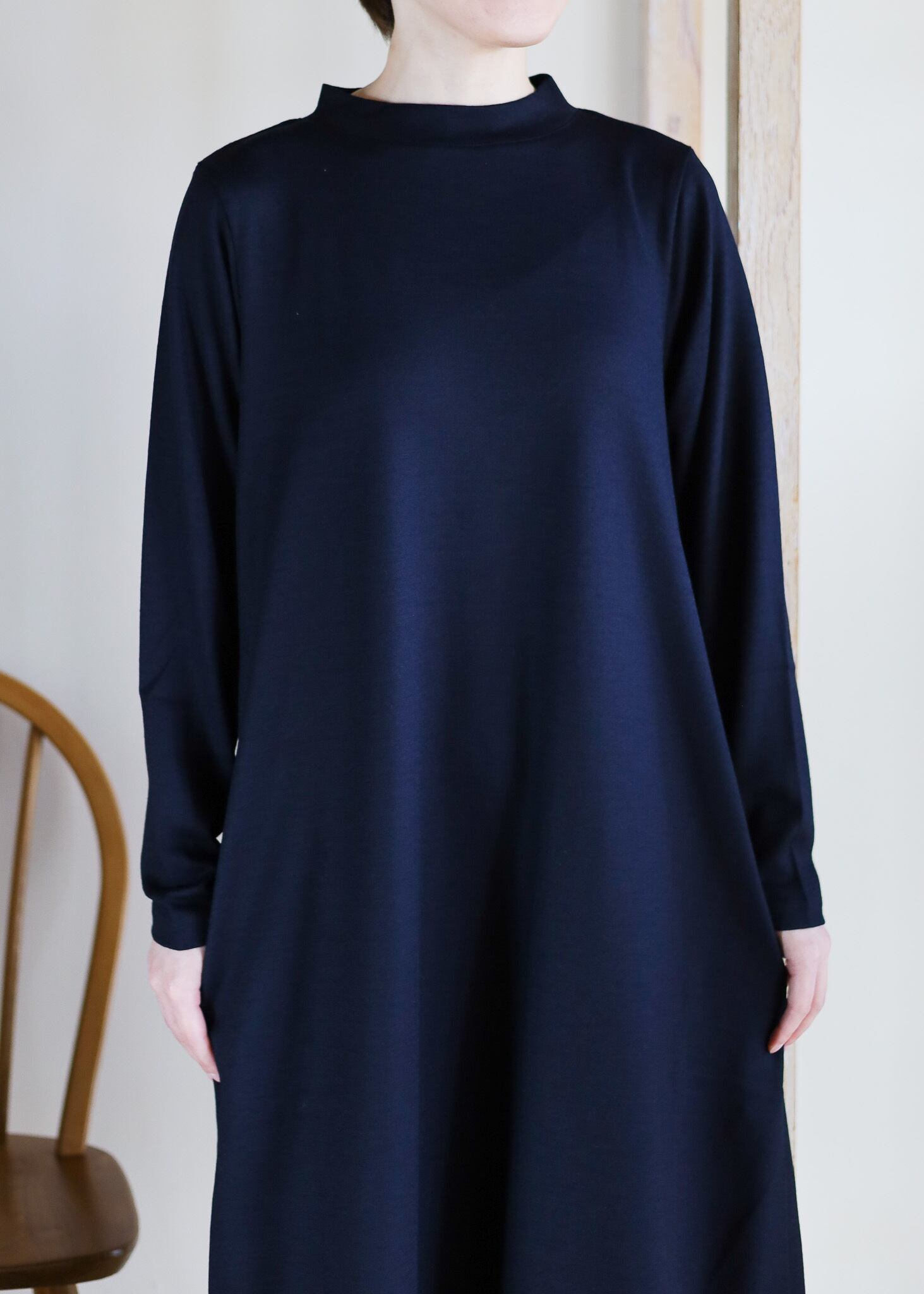 HAND ROOM WOMEN'S - ウールジャージー ボトルネックワンピース - Navy